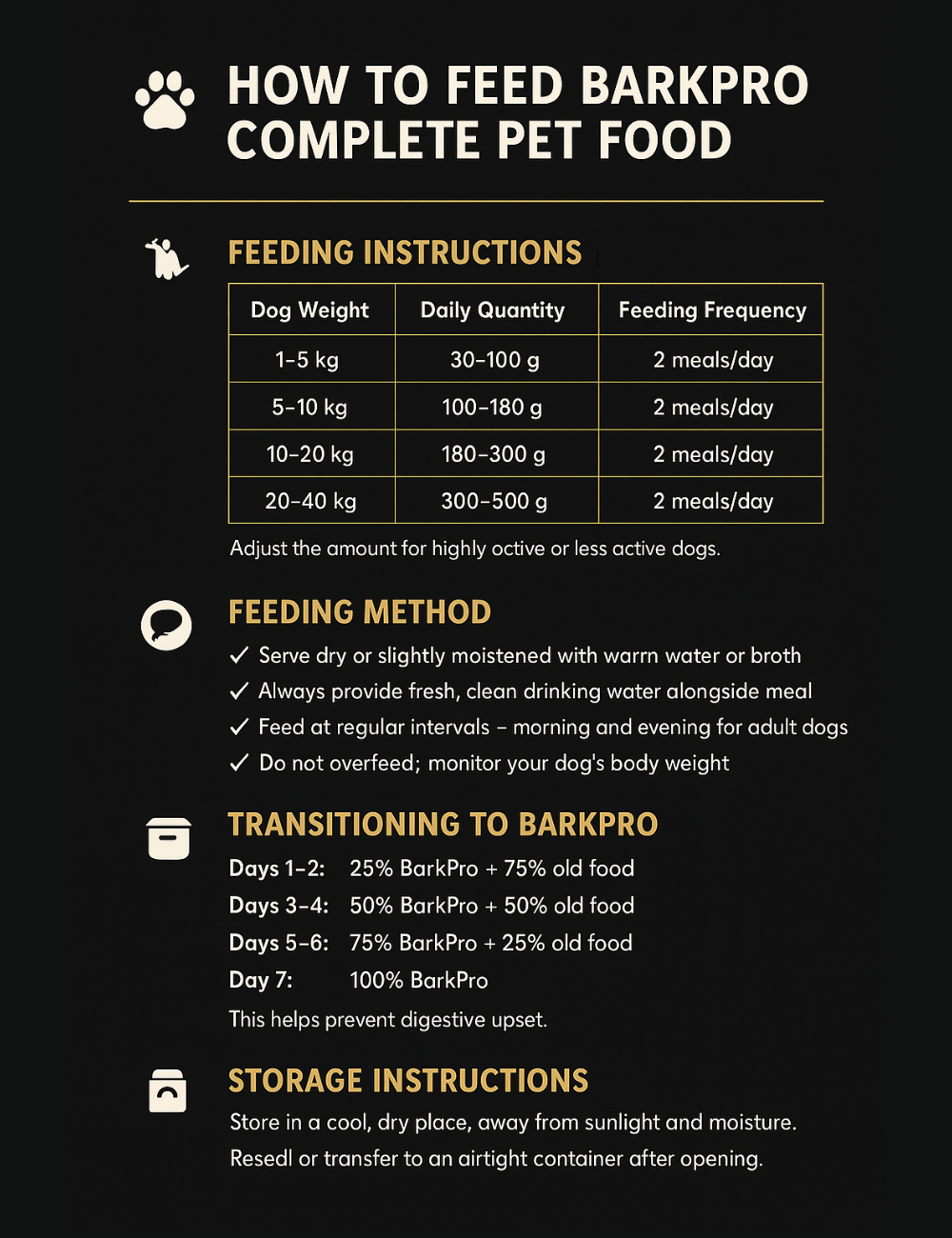 Whether it’s an active outdoor companion or a relaxed home buddy, BarkPro provides complete daily nutrition your dog deserves.